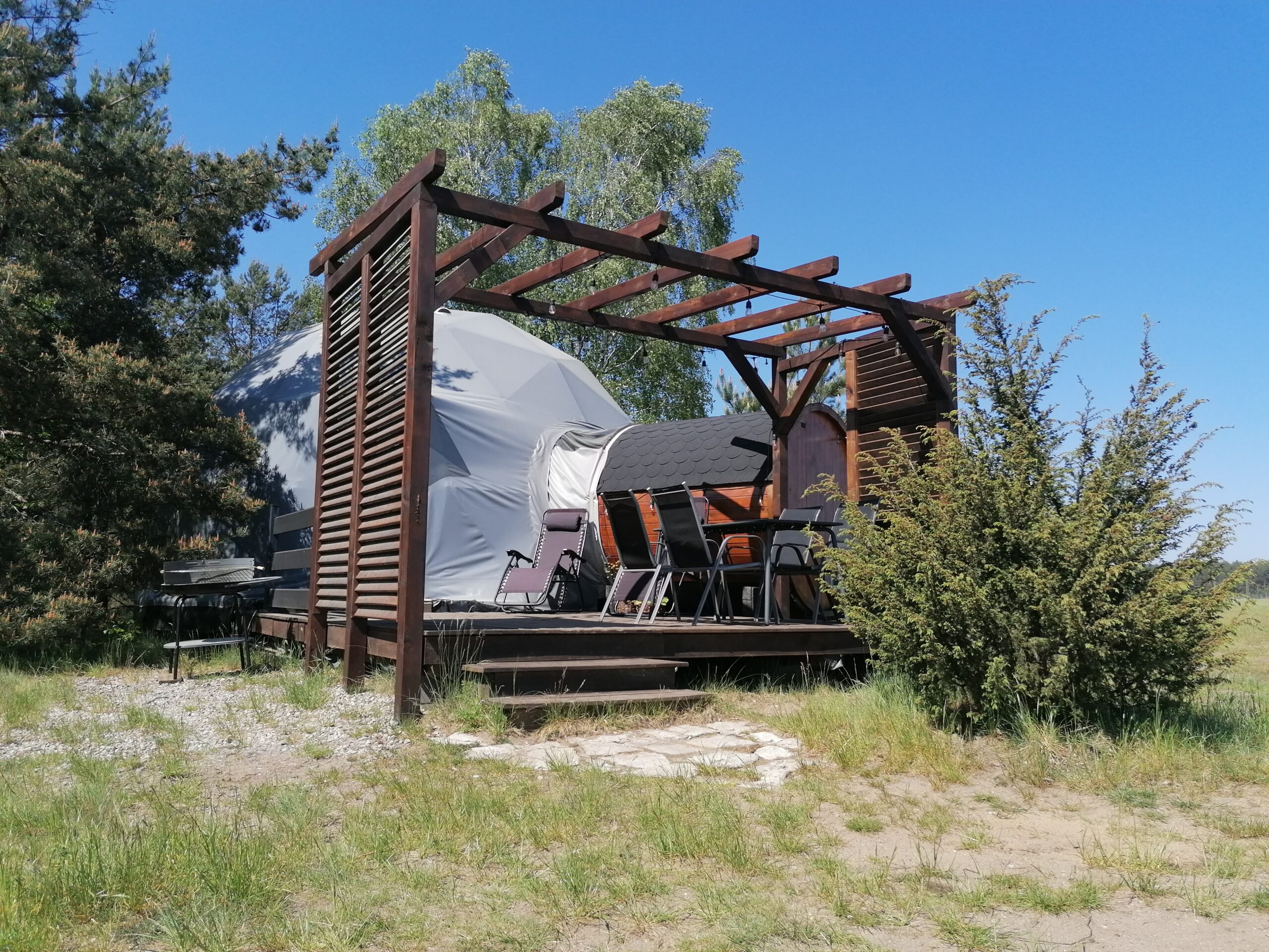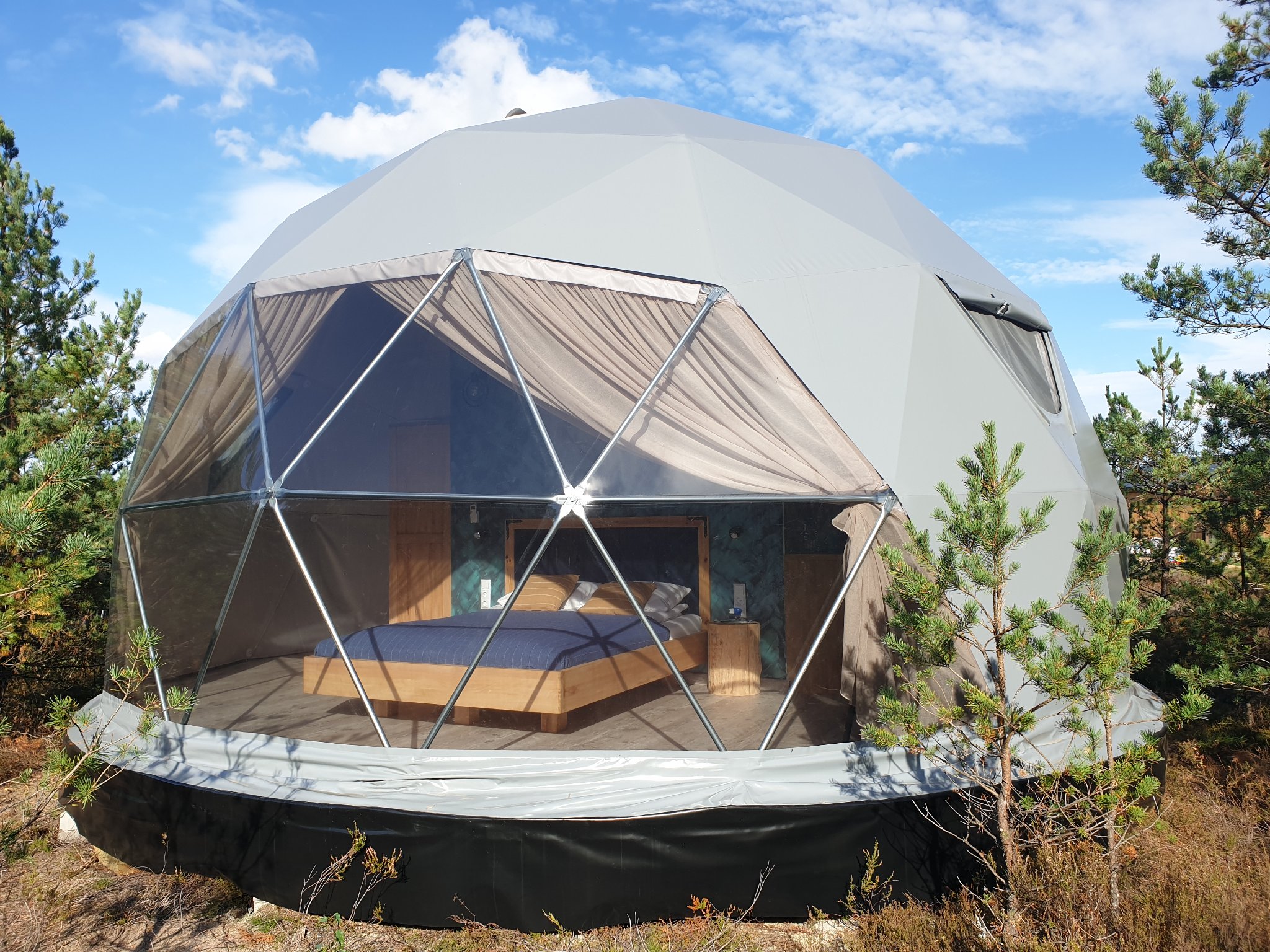 Glamping Podniebny - unikatowe miejsce na Kaszubskiej Ziemi, położone w miejscowości Borsk na granicy lasów Wdzydzkiego Parku Krajobrazowego i otwartej przestrzeni trawiastego lądowiska, zamkniętej w oddali ścianą sosnowych borów.