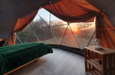 Na terenie Glampingu Podniebnego zapewniamy zakwaterowanie w elegancko i wygodnie wyposażonych namiotach sferycznych, ALE … należy pamiętać, że to wciąż są Namioty i „zachowują się” jak namioty 🙂 Dlatego Drogi Gościu, nie martw się, że czasem ze ścianek namiotu skrapla się woda, a wnętrze wychładza się i nagrzewa troszkę dłużej.