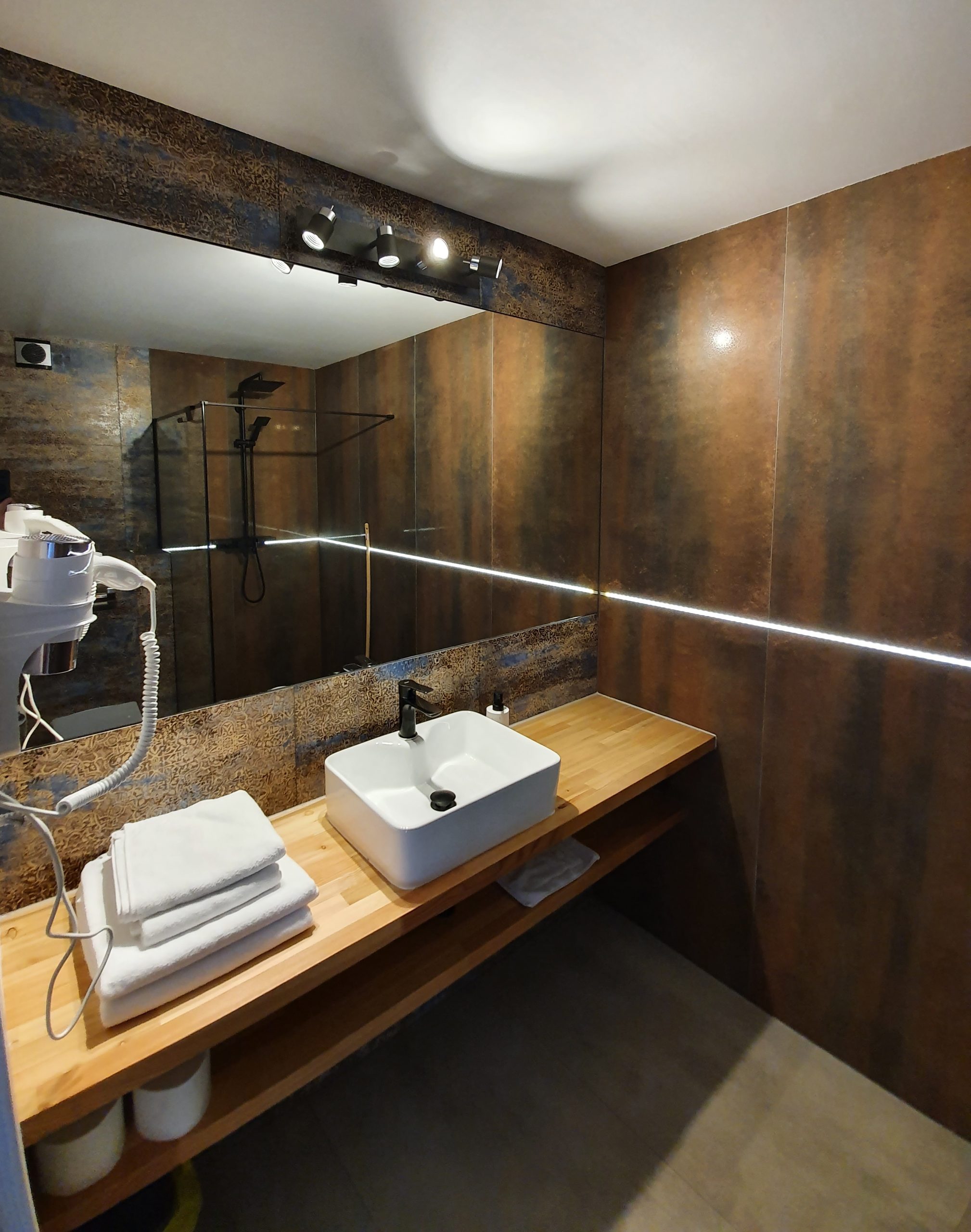 ŁAZIENKA:duży prysznic, toaleta, ręczniki, suszarka do włosów, mydło w płynie, papier toaletowy