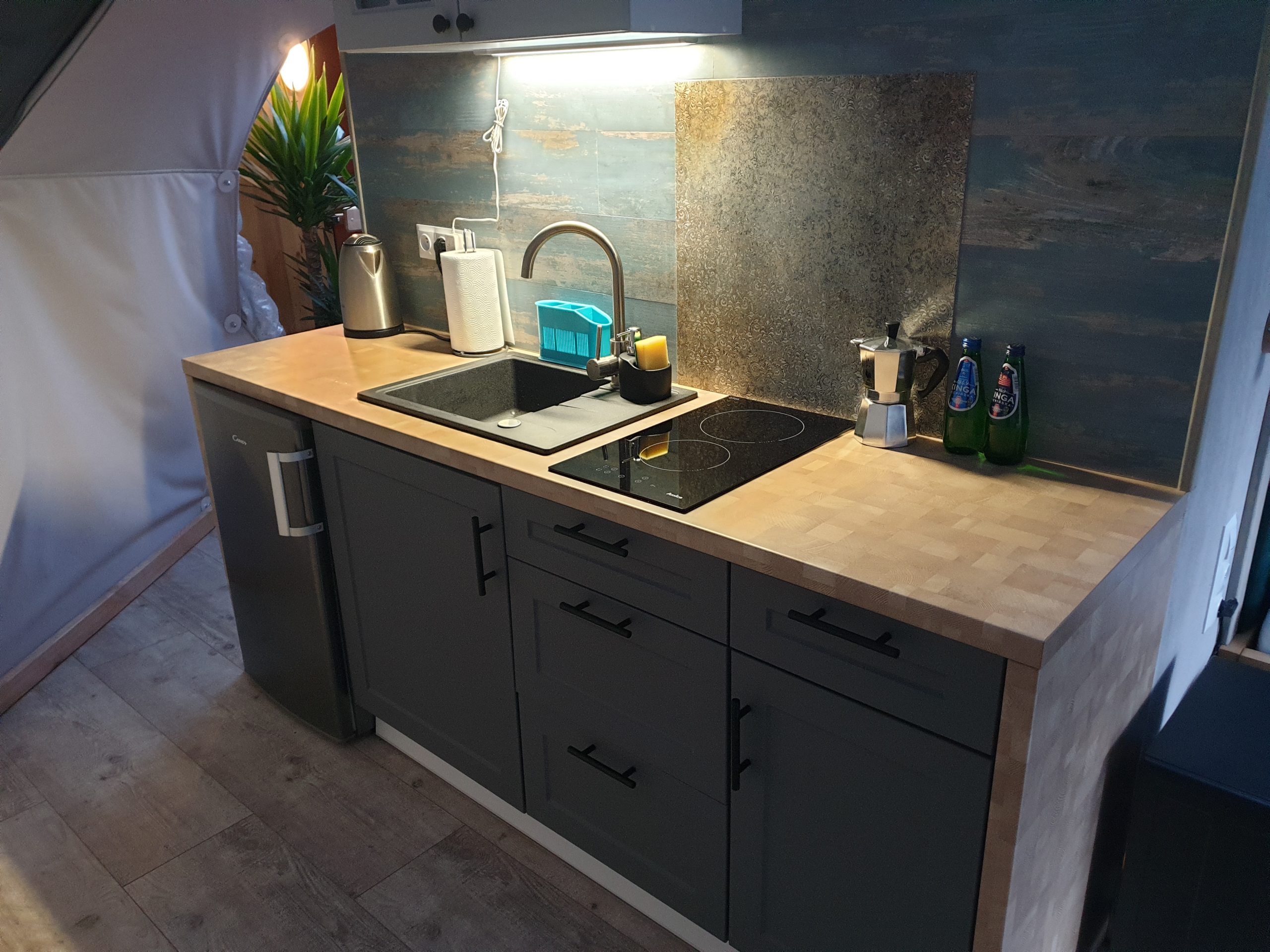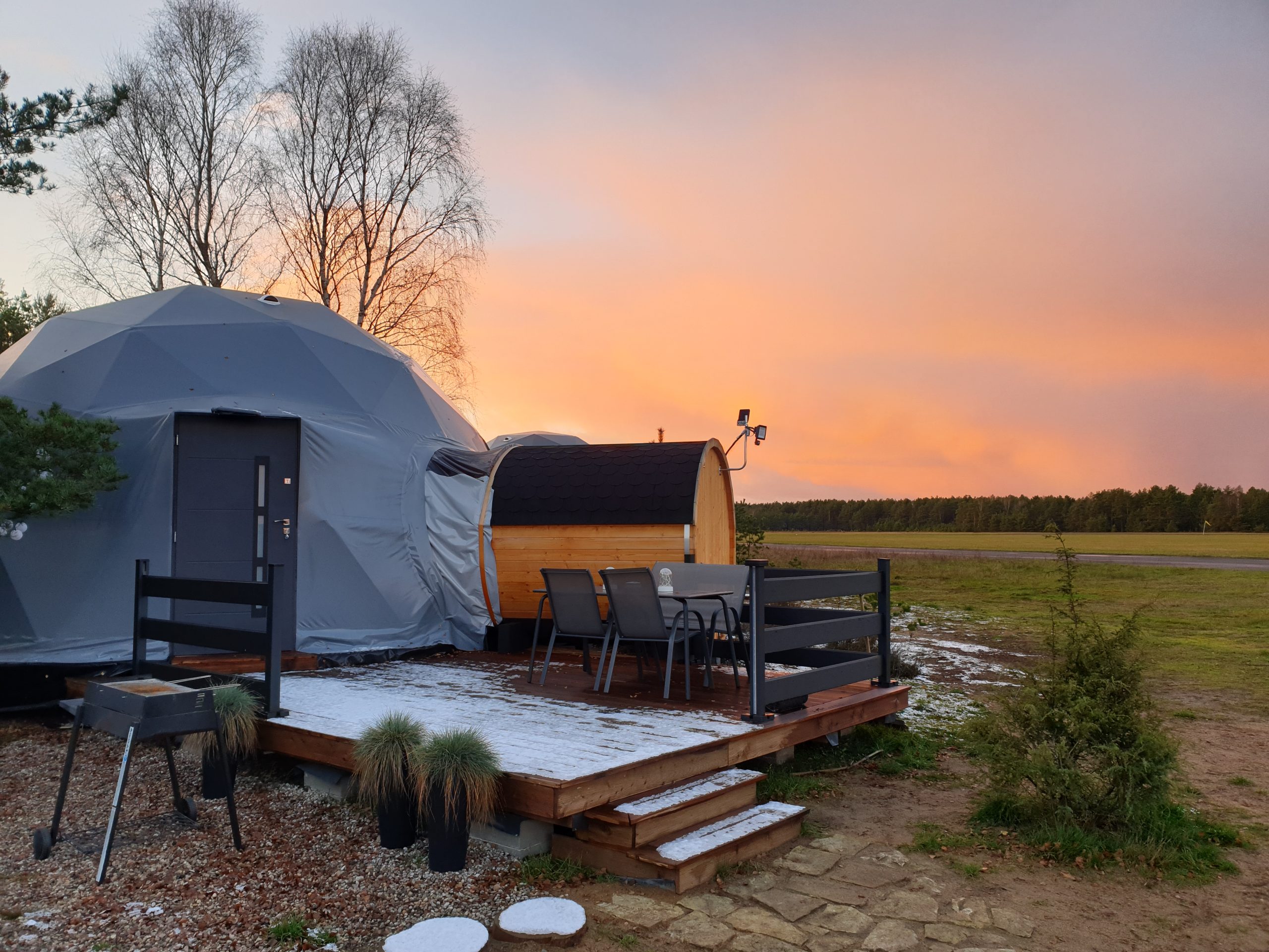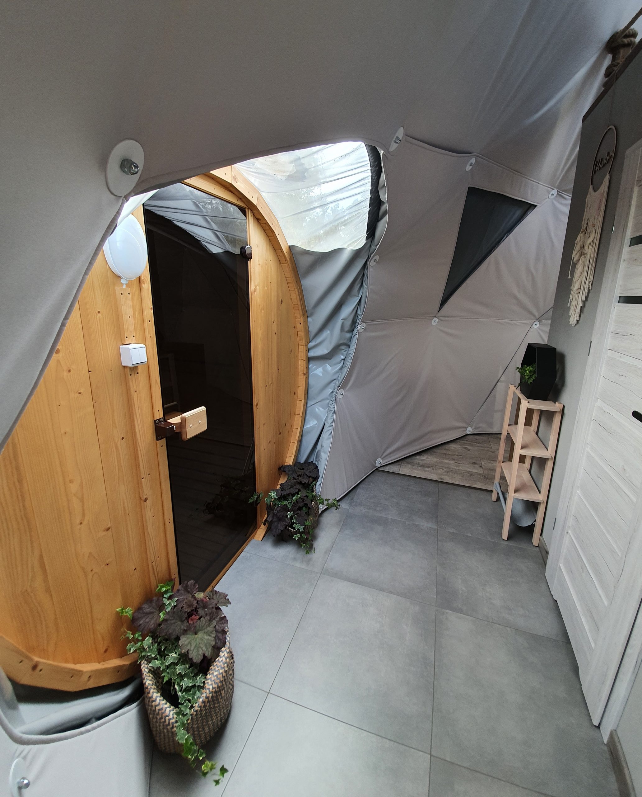 Posiadamy dwa namioty wyposażone w saunę-beczkę do prywatnego użytku przez gości danego namiotu.